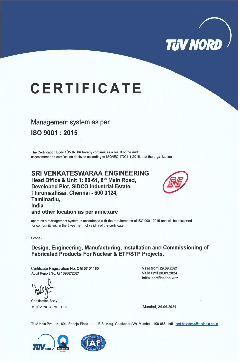During 2000, our Company received first project for Sewage Treatment Plant at Koyembedu, Chennai through M/s. VA Tech Wabag Ltd. The work involves fabrication and erection of aluminum sewage gate, aerator with gear box erection, aeration tank handrails in SS and carbon steel piping, CI piping (with lead lining), etc.
